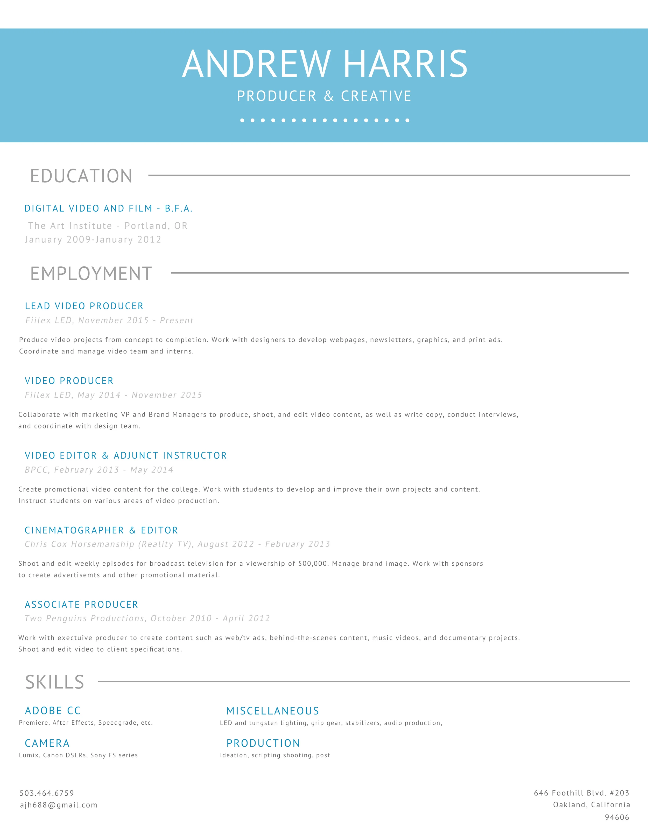 Andrew is a video producer with over 6 years experience working in every area of production from ideation and development to post-production and distribution strategies. From a young age he knew he had a love for creating moving images and especially for the non-fiction format. Andrew loves spending time with his wife and their dogs, watching movies, traveling, and food.